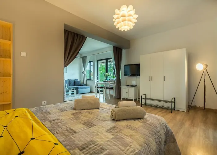 A Strand Baracken Rubin 2 km-re helyezkedik el az apartmantól. A vendégek európai, mediterrán és horvát ételeket élvezhetnek a Trattoria Feral konyhájából, alig 400 méterre a szállástól.